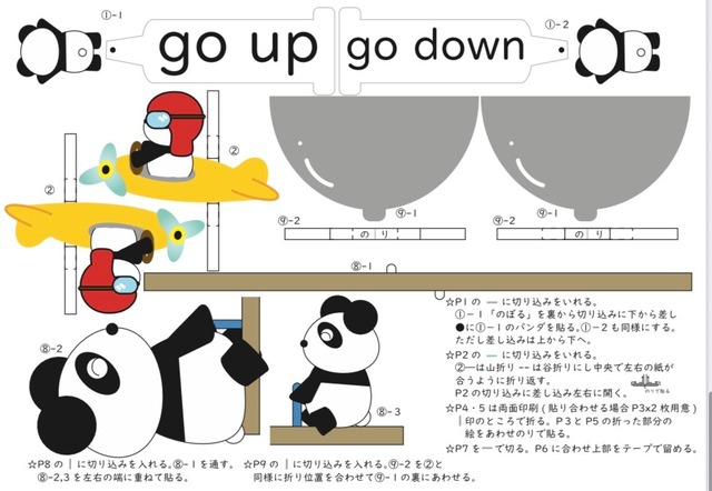 とびだす展開図のクラフトです。 厚紙にプリントアウトしマークのところで穴をあけて引っ張ると立体が完成します。 ひもの通し方、引っ張り方については動画を参考にして頂ければと思います。 必要な材料:厚紙・ヒモ(毛糸でも良いですし、ひもを見えなくするには透明な糸が良いと思います。) 穴あけパンチ(穴のあける位置が見やすいものが良いです。) 作り方 ・展開図を2枚(立体図形本体用と台紙用)を印刷します。 ・本体展開図を外側の線で切り、折り筋を付けます。 ・切り出した本体展開図の黒い印の部分に穴を開け紐を通します。 (紐の通し方は別紙) ・本体の底面を台紙の底面に合わせて貼り合わせます。 (*底面に穴がある場合は、穴周辺は糊をつけないようにしましょう) ・台紙の◎部分にも穴を開け紐の両端を台紙の穴に通して引きます。 図形8種類+ひもの通し方の説明2枚の計10枚です。