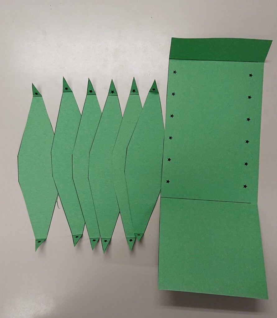 4.パーツを貼り終えた型紙の台紙の端(のり部分)を貼り合わせます