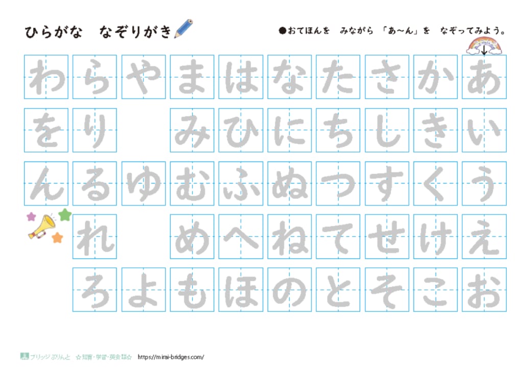 大きめのなぞりがきプリント”あ”~”ん”まで×46枚