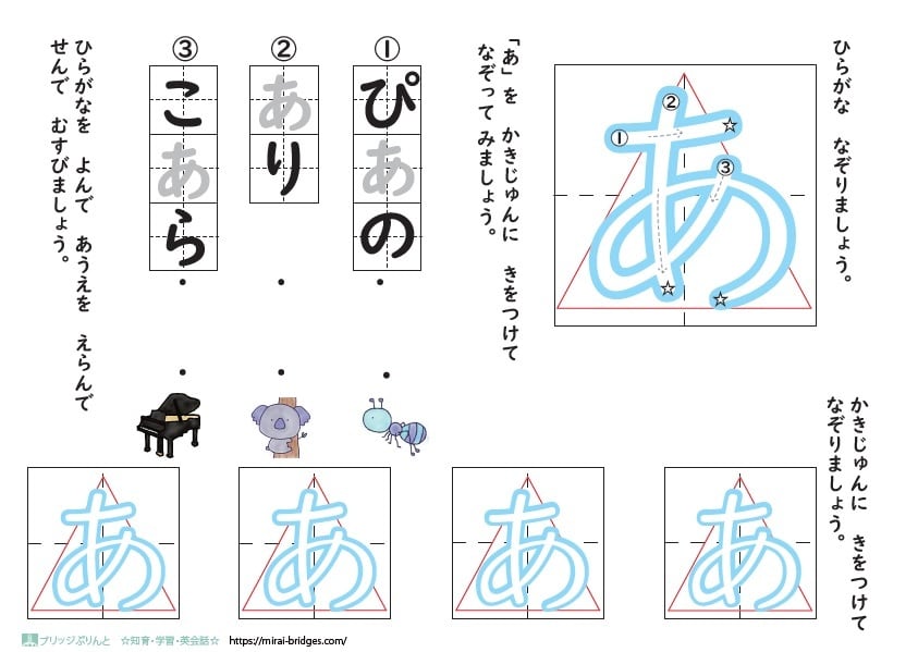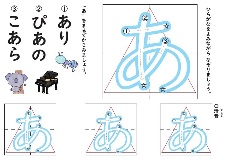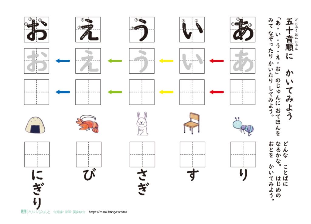 少しパターンのちがった書き順プリントもの”あ”~”ん”まで×46枚