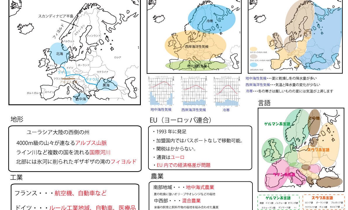 中学地理ヨーロッパ編のポスター練習問題付のPDFデータ2枚分です。