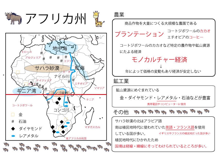 中学地理アフリカ編のポスター練習問題付のPDFデータ2枚分です。