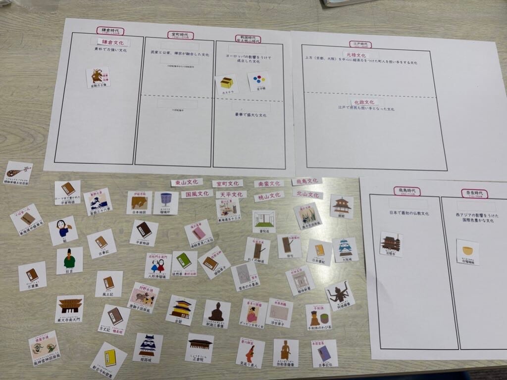 (飛鳥文化、奈良文化、平安文化、鎌倉文化、室町文化 北山文化、東山文化、 南蛮文化、桃山文化、元禄文化、化政文化)