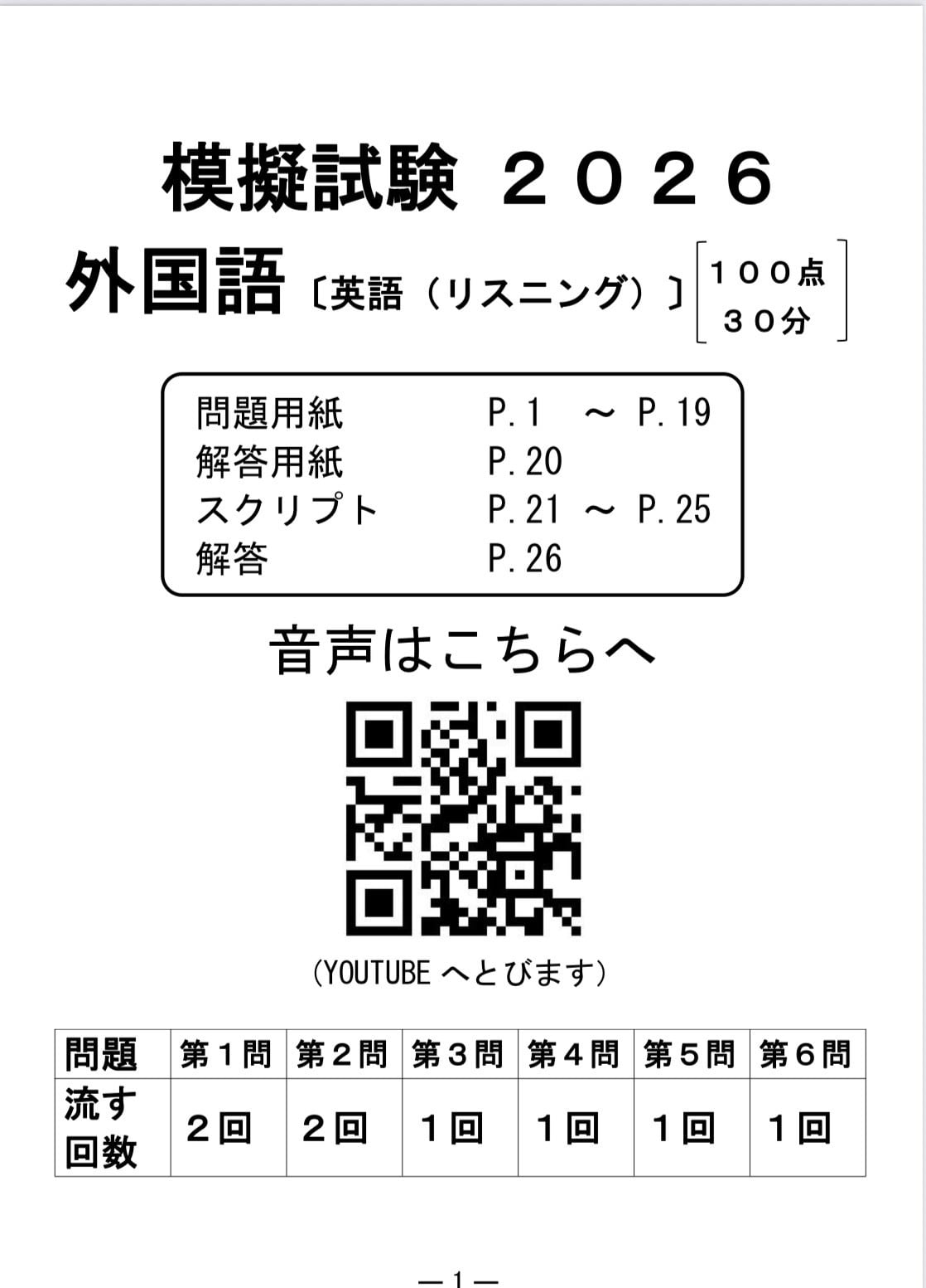 共通テスト英語リスニングオリジナル予想問題です!解答のスクリプト付きなので解き直しにもおすすめです!PDFデータ全26枚となります!
