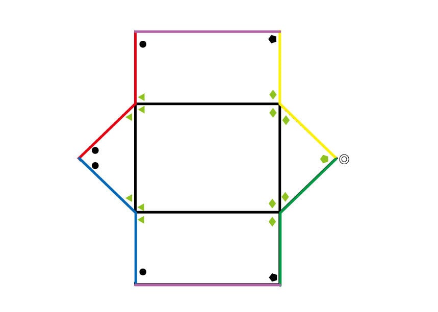 厚紙にプリントアウトしマークのところで穴をあけて引っ張ると立体が完成します。